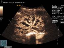 Die bislang eingesetzten Ultraschallmethoden stoßen allerdings an ihre Darstellungsgrenzen, wenn es um die Darstellung der feinen Blutgefäße in der Niere geht. Die Kontrastmittel-Sonografie kann hier abhelfen. Dem Patienten wird dabei ein mit kleinsten Bläschen (Mikrobläschen) versetztes Mittel injiziert, dass binnen kurzem die Niere erreicht, dort durch die Blutgefäße fließt, wobei die Mikrobläschen die Ultraschallwellen reflektieren und die Darstellung der Gefäße ermöglichen.